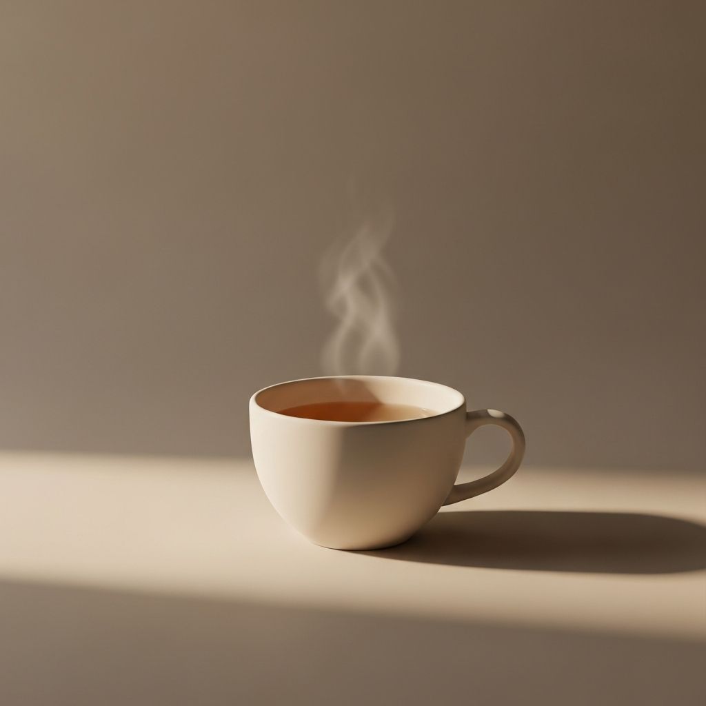 Serene mindful meal setting with tea and food